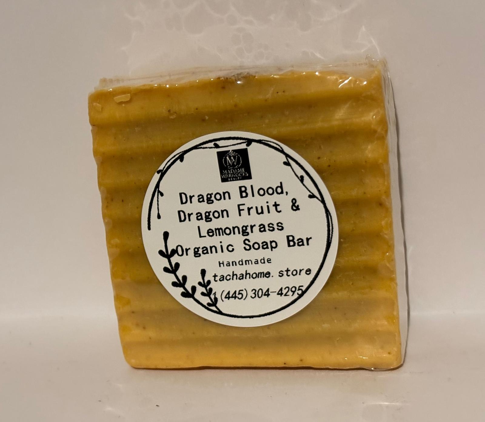 - "Dive into luxury with our Dragon's Blood, Dragon Fruit & Lemongrass Organic Soap. This handcrafted bar blends the deep, mysterious notes of Dragon's Blood with the sweet zest of dragon fruit and the invigorating freshness of lemongrass for a truly unique, tropical clean. Made with organic oils and botanicals, it leaves skin feeling refreshed, moisturized, and delicately scented."